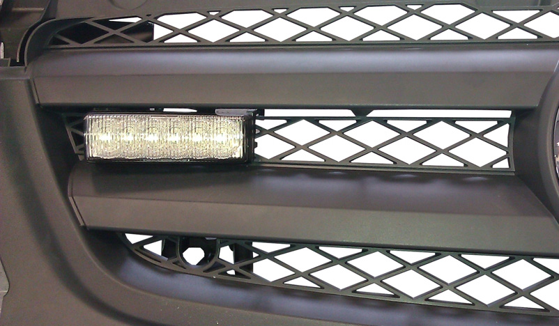 Die Halter dienen zur Montage der LED-Frontblitzer Typ K-FS 4 an die Fahrzeugfront eines Mercedes Benz Vito.